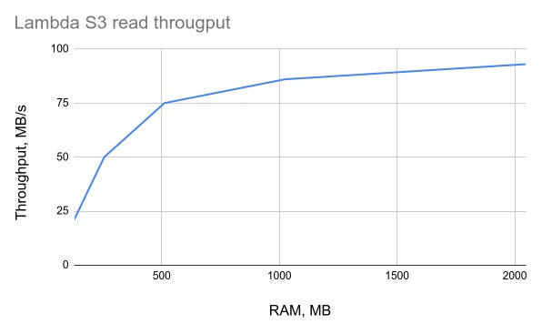 S3 throughput data is well aligned with known S3 throughput limits for AWS EC2 instances. Assuming that we have only 2 vCPU max, 100MB/s is the best you can expect - which is not nice considering that to run search we need to access the index.