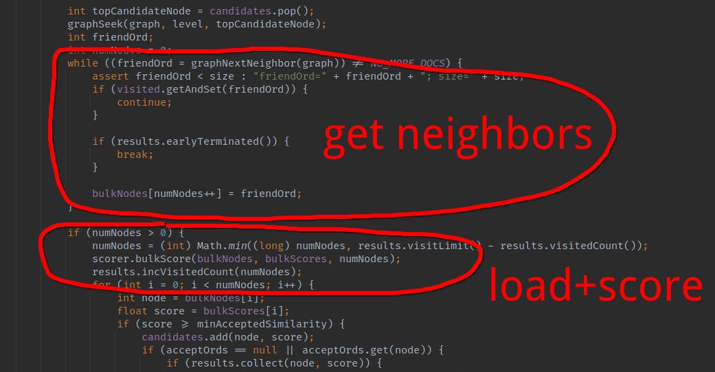 But you don’t need to be iterative while loading neighbor embeddings: Lucene’s HnswGraphSearcher is already quite close to be bend into the direction for making embedding load concurrent and parallel: